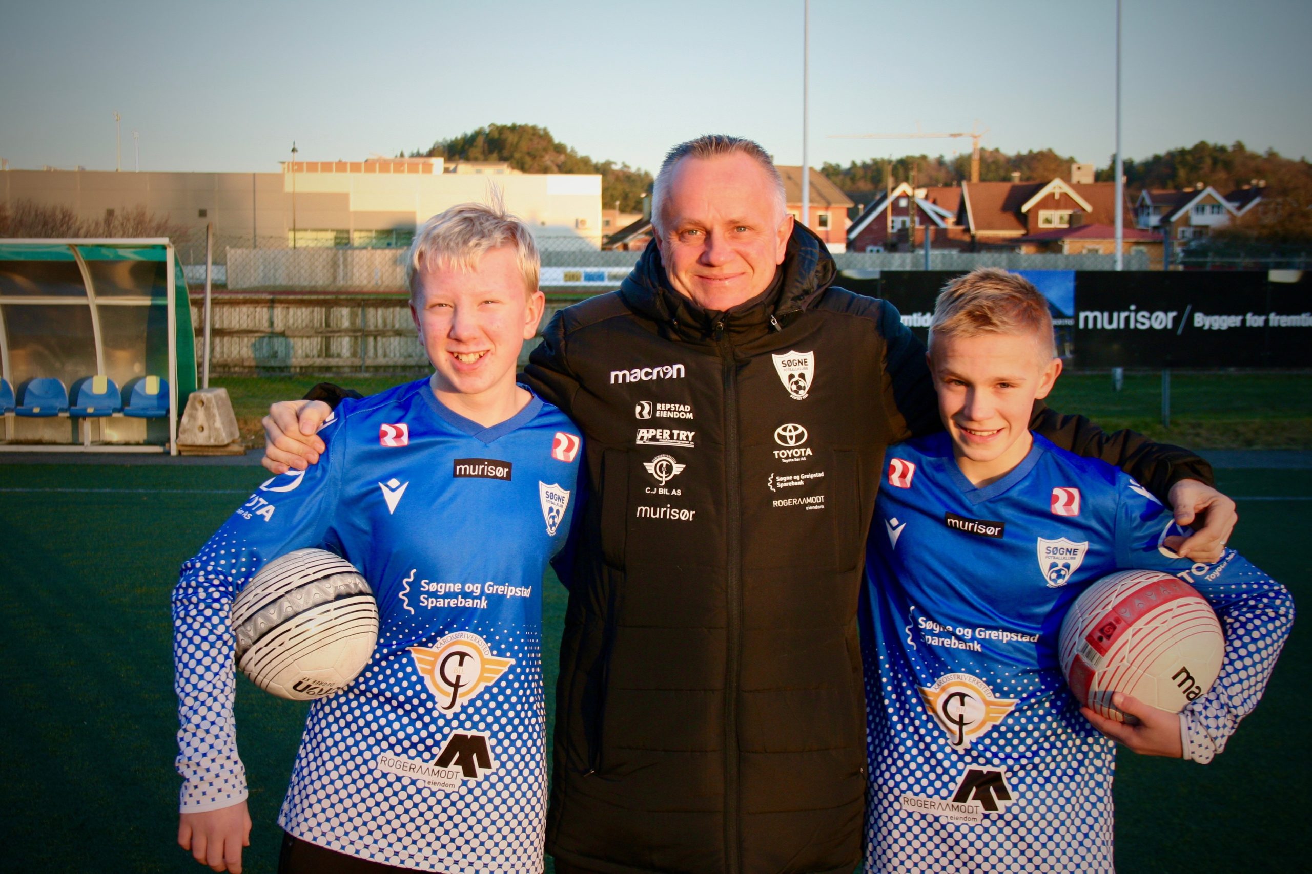 Duoen på Søgne FKs gutter 13-lag har akkurat lagt bak seg en lang sesong. Men selv om kampene for lengst er ferdigspilt og det nærmer seg jul, møtes kameratgjengen fortsatt på kunstgresset på Toyota-banen for å trene.